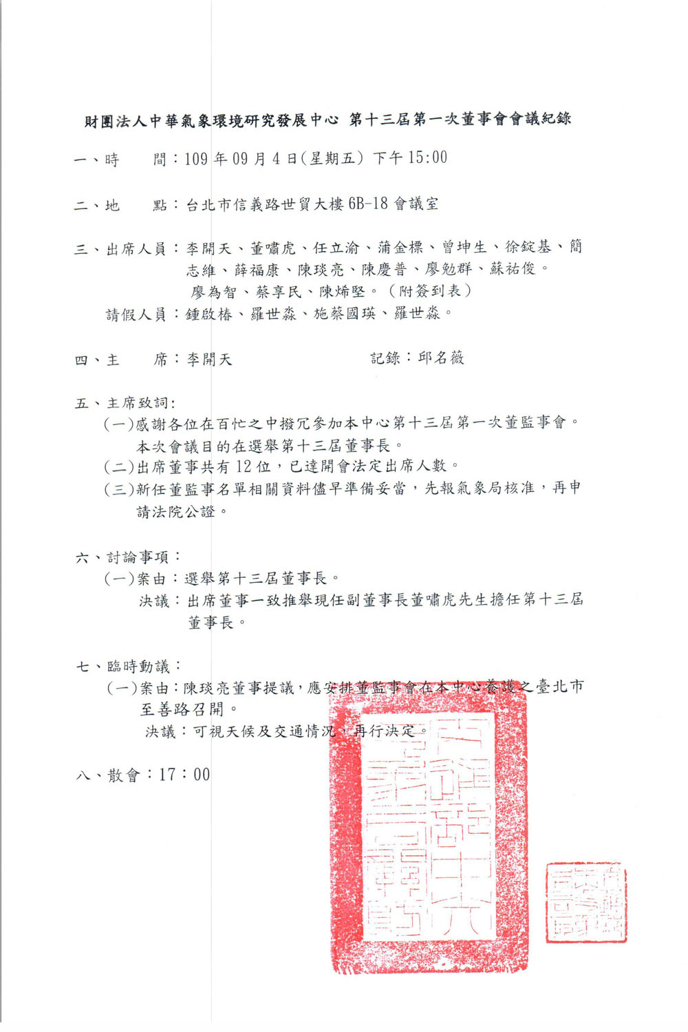 110年第十三屆第一次董監事會議會議紀錄