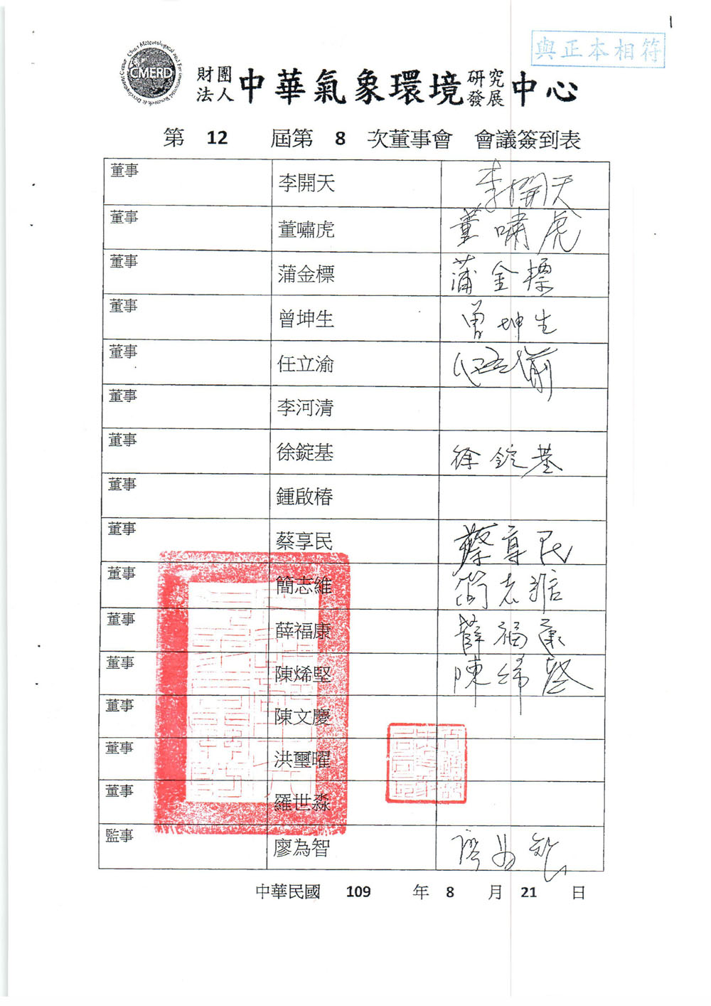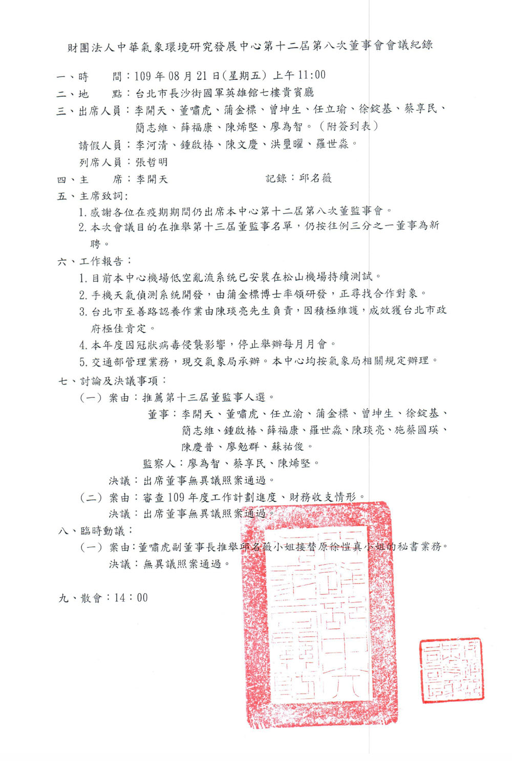 109年第十二屆第八次董監事會議會議紀錄